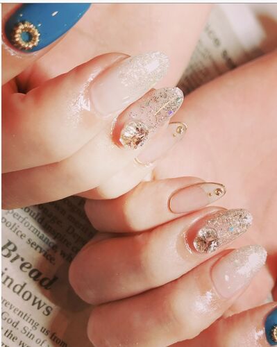 サロンデザインNo.194 ハンドネイル オフ 500yen サンプルデザイン 4,000yen 4,500yen + Tax ラメグラデーション/ネイビー